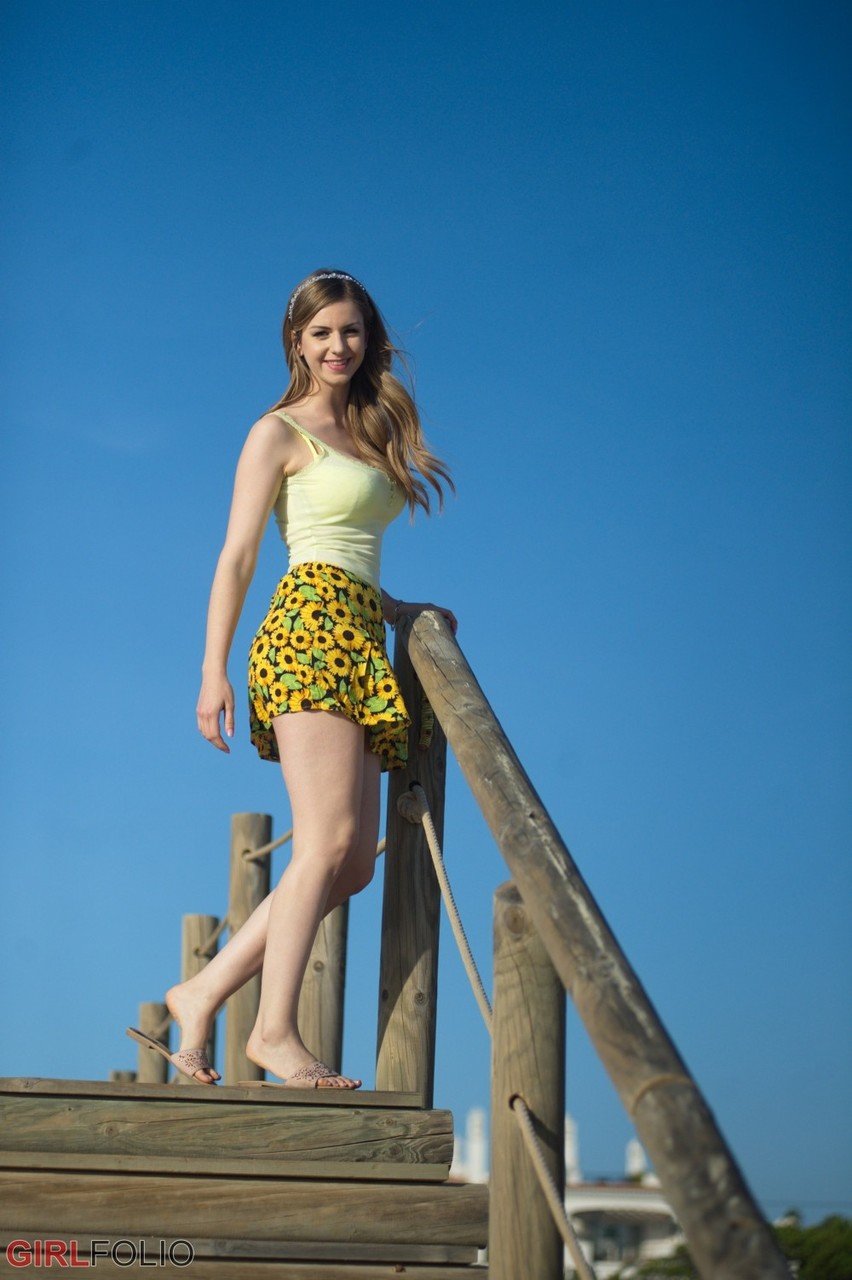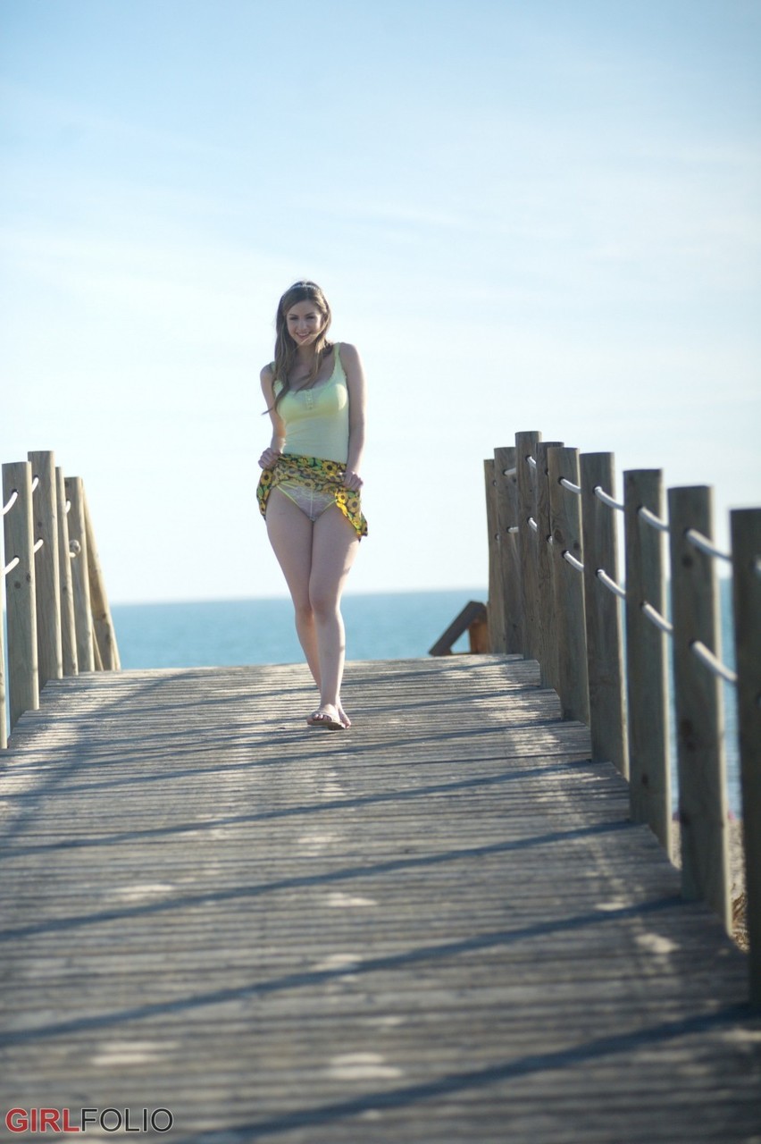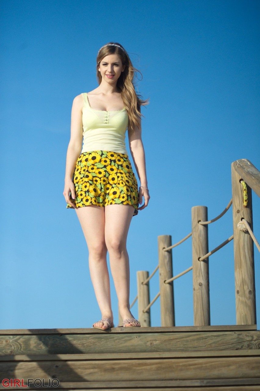 Белая соло-девушка Стелла Кокс обнажает свои натуральные сиськи и пизду на скамье подсудимых