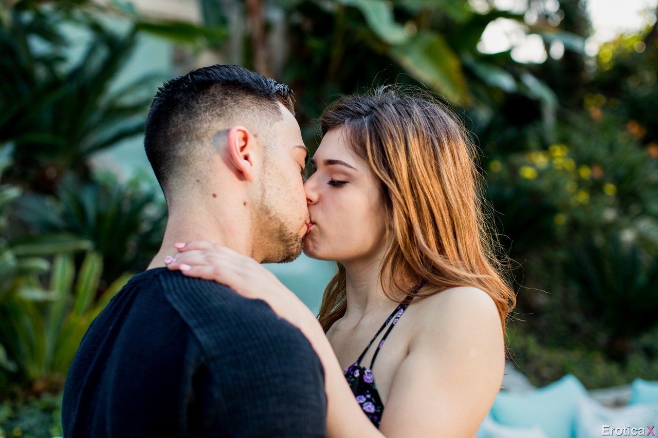 Голая юная Лия Готти получает вылизывание киски и трах по-собачьи у бассейна