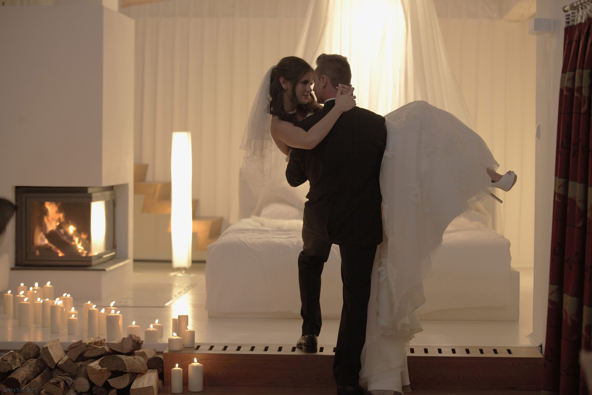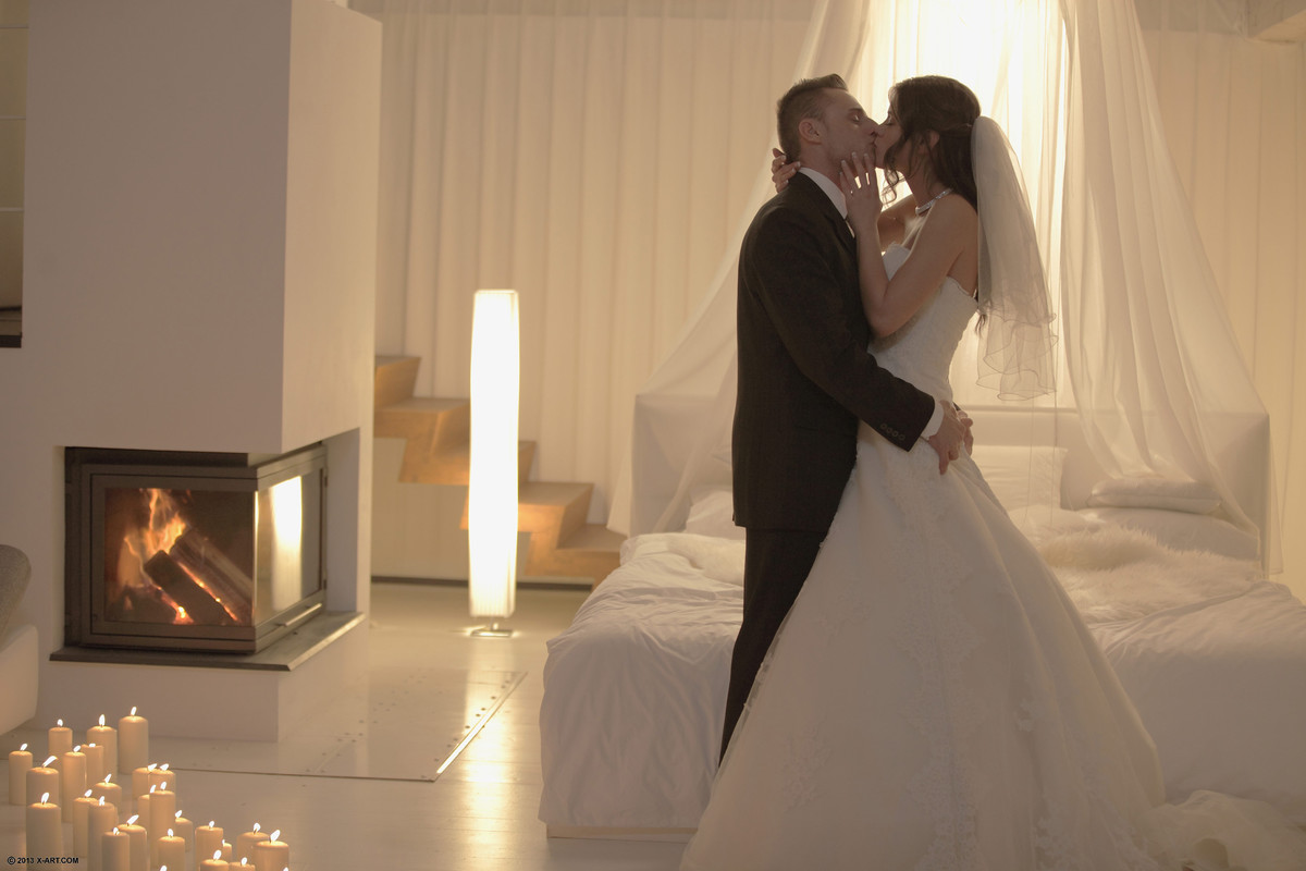 Горячая молодая невеста сосет член своего нового мужа и скачет верхом на наезднице в первую брачную ночь