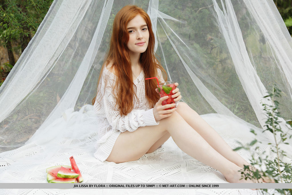 Горячая рыжеволосая Джиа Лисса обнажает свою плоскую подростковую грудь, когда раздевается