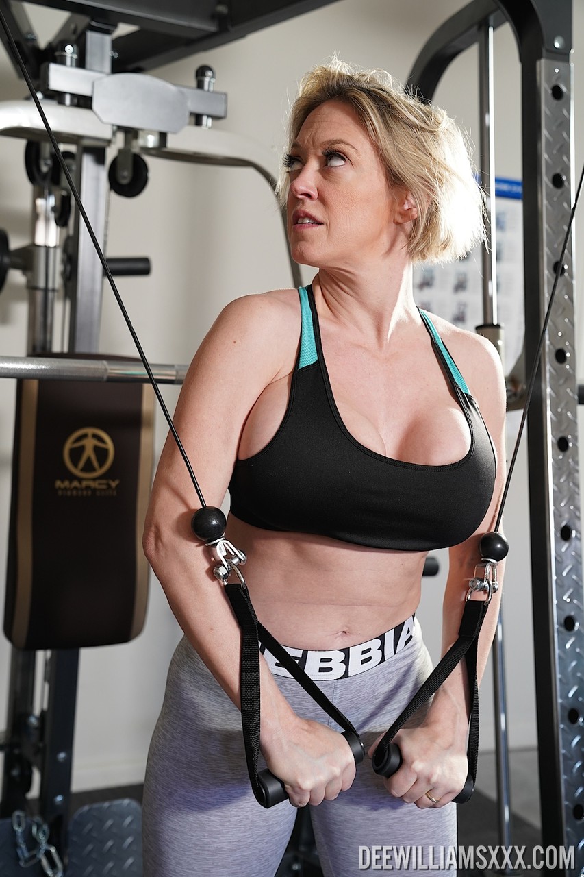 Грудастая женщина Ди Уильямс сосет и трахается с мужчиной во время тренировки в тренажерном зале
