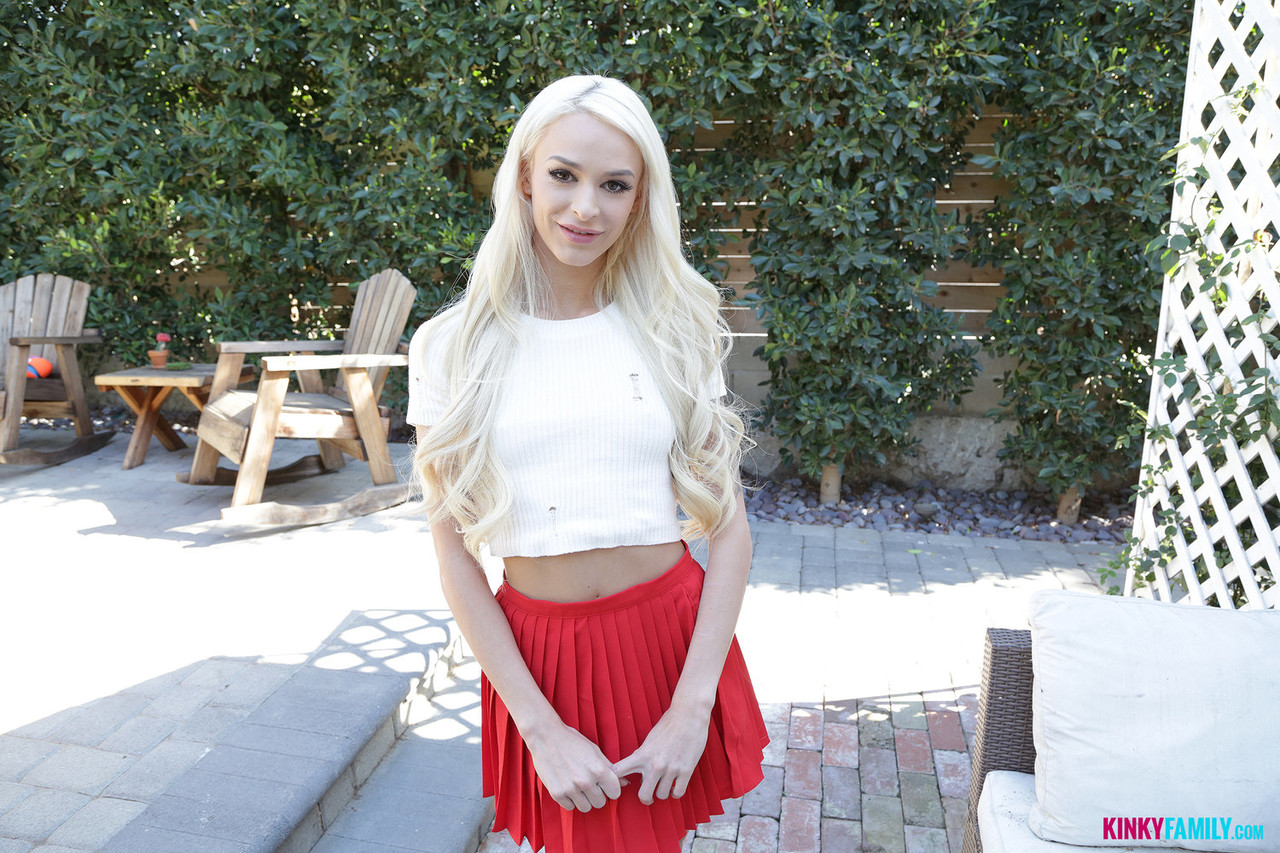 Худенькая девушка с длинными светлыми волосами Эмма Хикс занимается сексом от первого лица после минета на открытом воздухе
