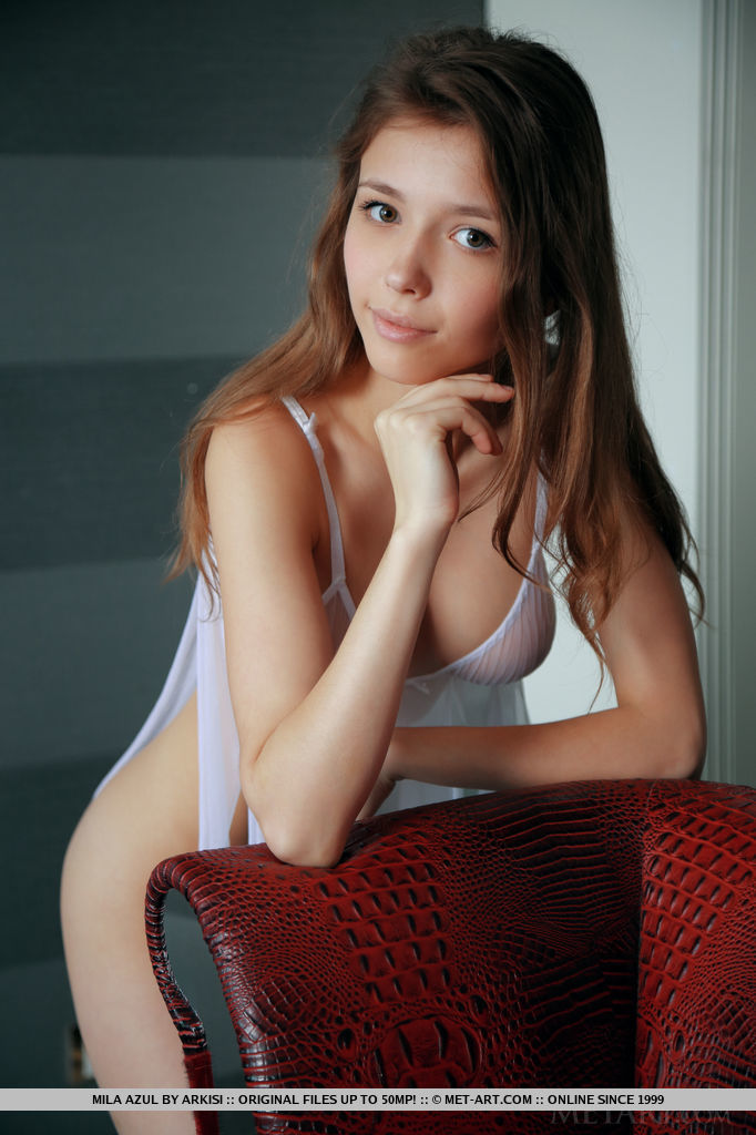 Идеальная модель-подросток Мила Азул снимает прозрачное нижнее белье, чтобы позировать обнаженной