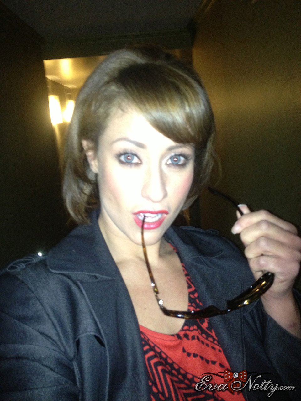Коротко стриженная цыпочка Ева Нотти обнажает свои гигантские сиськи во время селфи