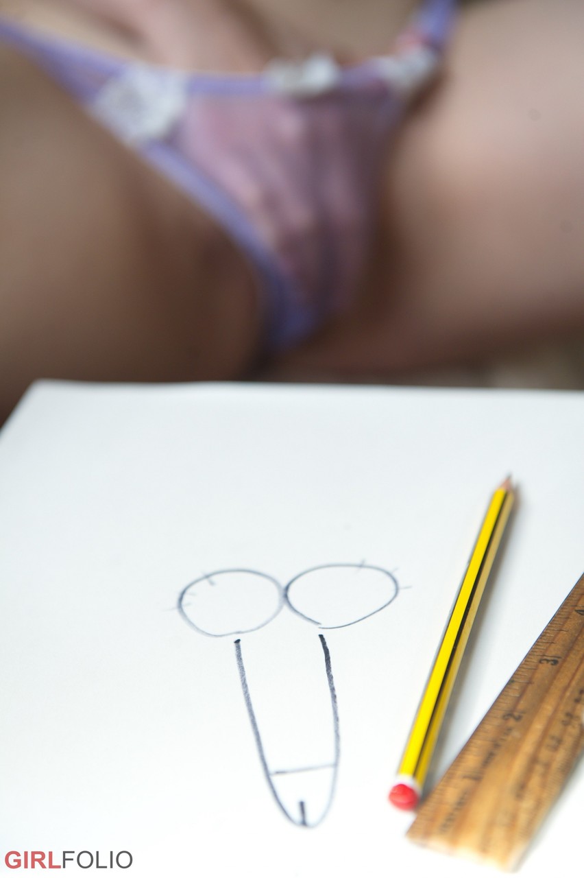 Красивая девушка Стелла Кокс трахает пальчиком свою пизду после того, как нарисовала член