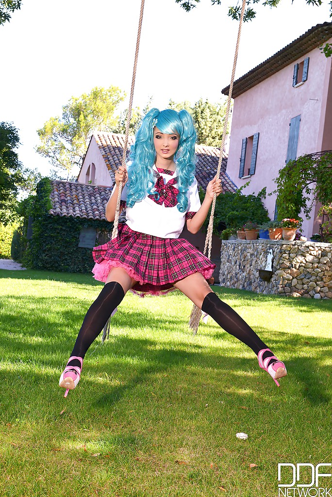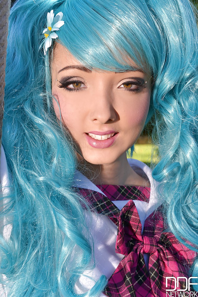 Красотка-косплеерша Люси Уайлд демонстрирует свои массивные сиськи на улице
