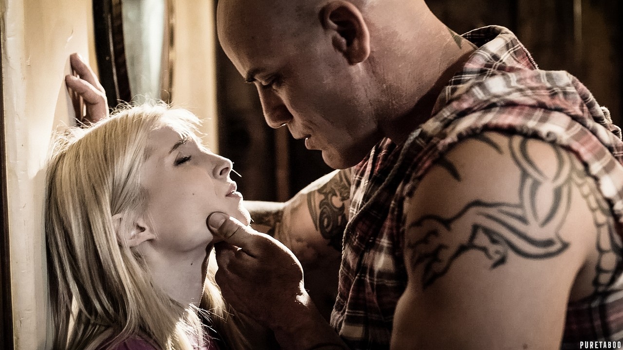 Маленькую блондинку Пайпер Перри грубо трахает ее татуированный лысый сосед