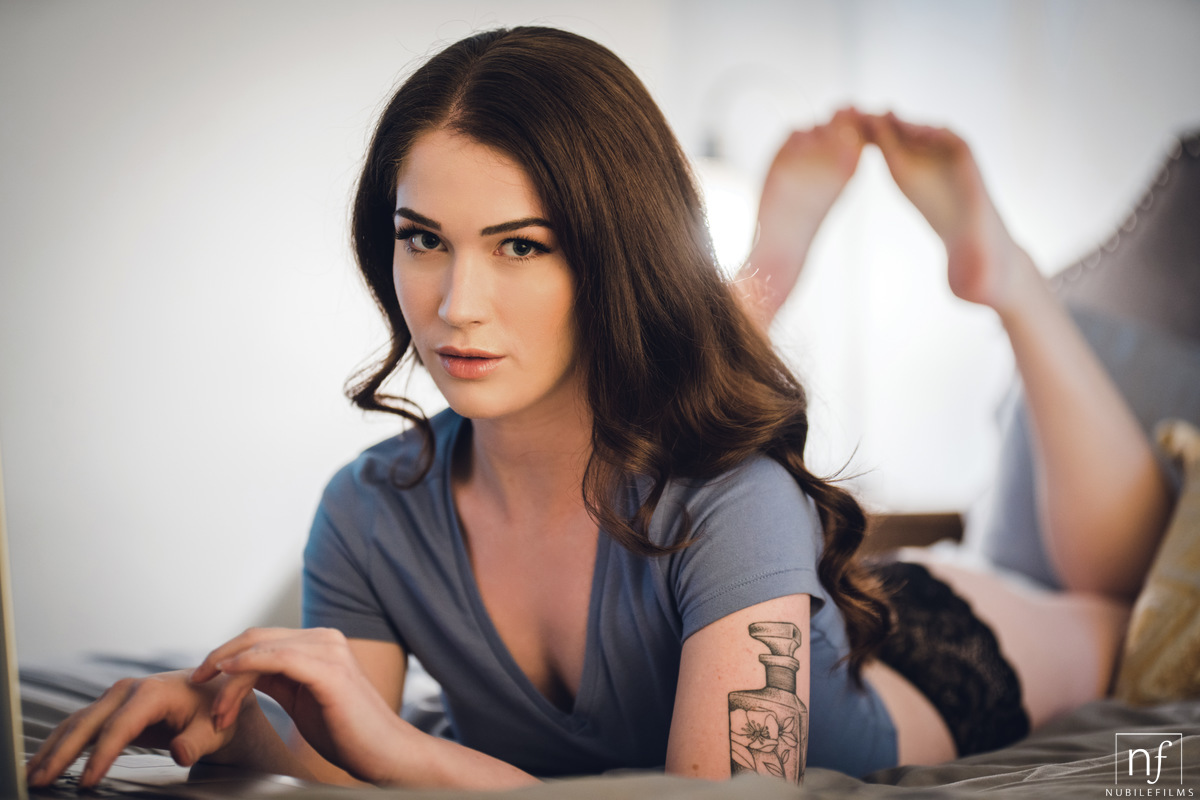 Милая девушка делает селфи топлесс перед сексом втроем с парой