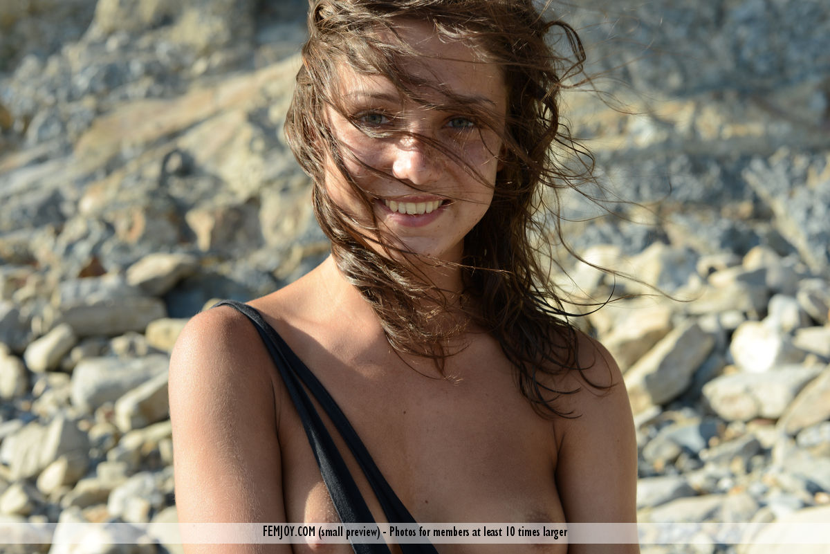 Миниатюрная молоденькая Медина У показывает свою сексуальную попку на надувном матрасе у океана