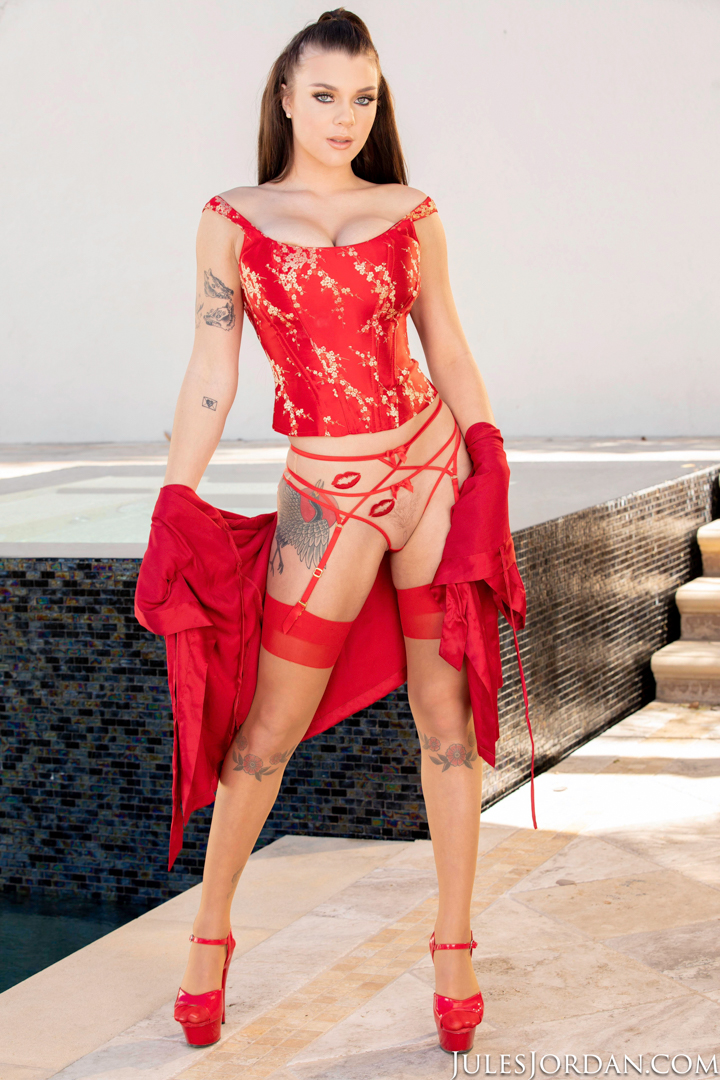 Молоденькая порнозвезда Габби Картер показывает свои огромные сиськи перед тем, как отсосать большой член