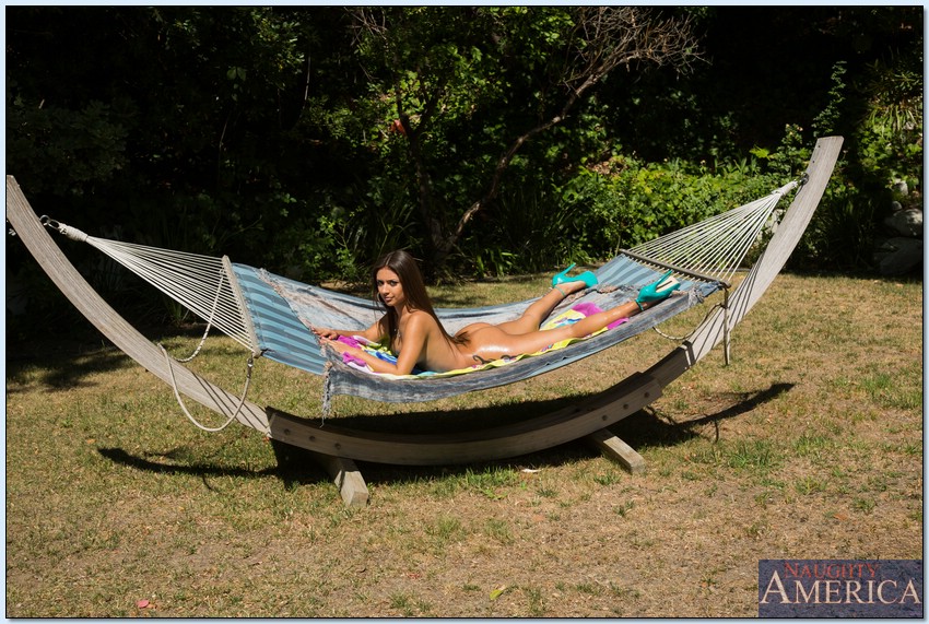Очаровательная латиноамериканка с сексуальной попкой Джинкс Мейз снимает свое бикини