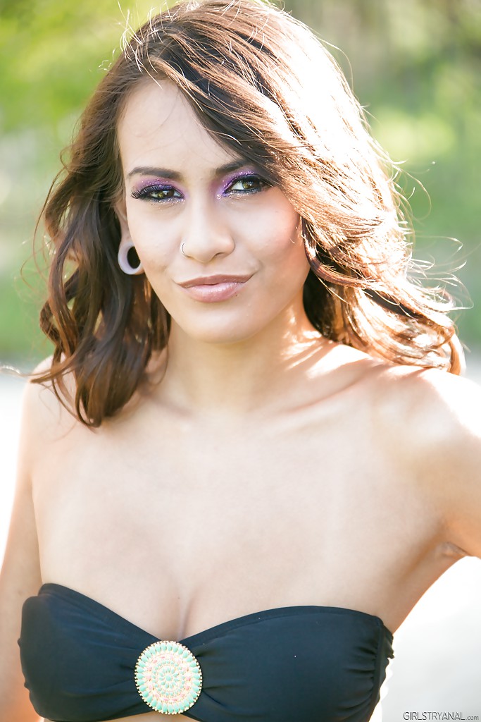 Похотливая молодая красотка Дженис Гриффит позирует на открытом воздухе в своем бикини