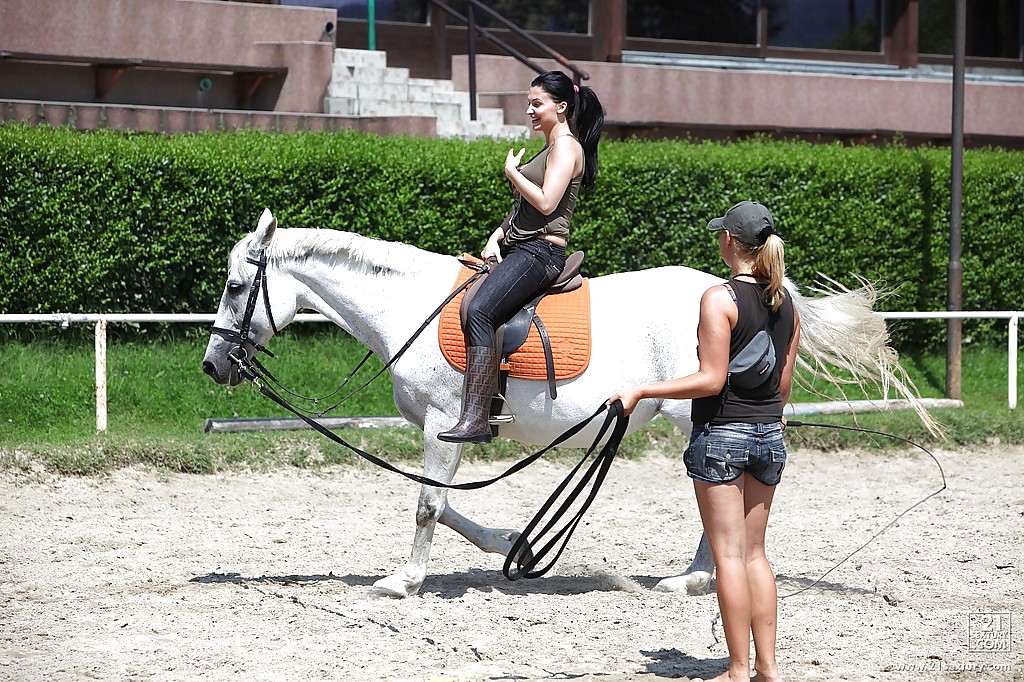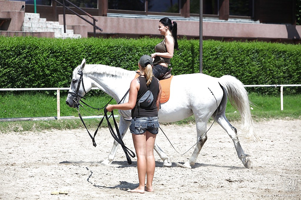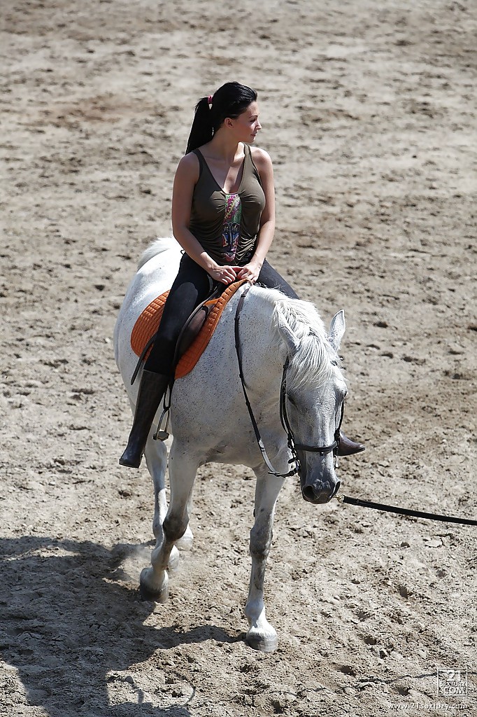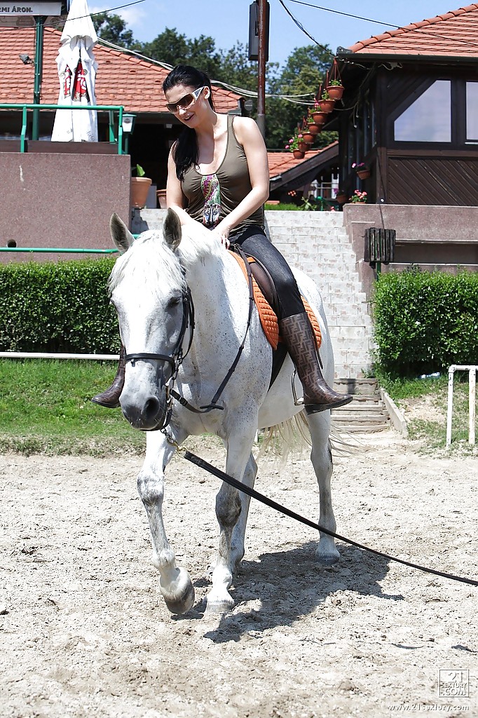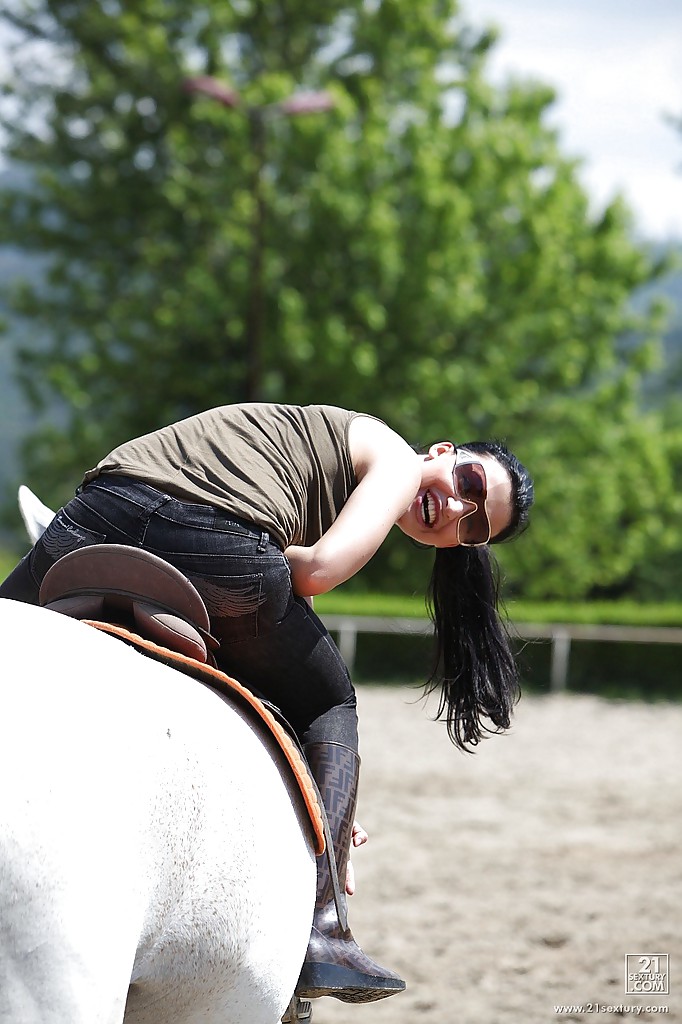 Порнозвезда Алетта Оушен катается на лошади на открытом воздухе в очках