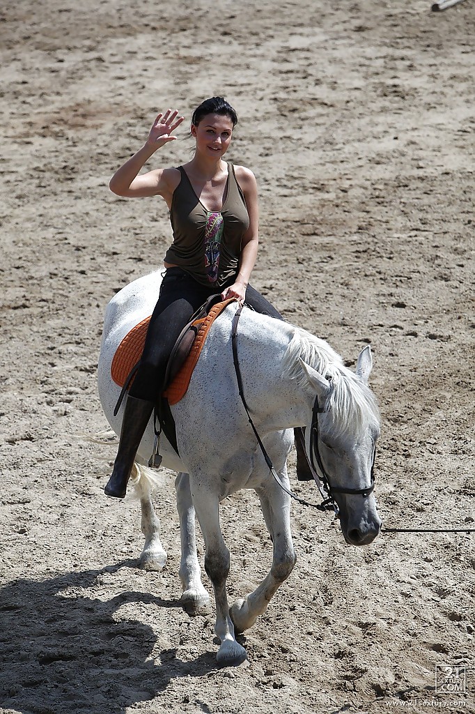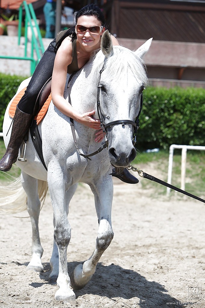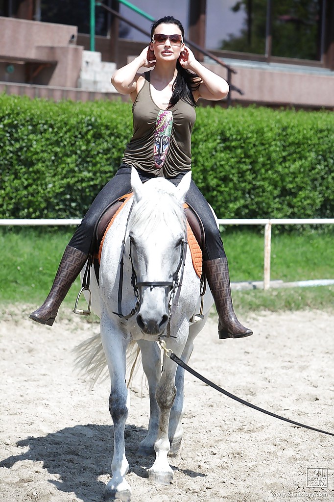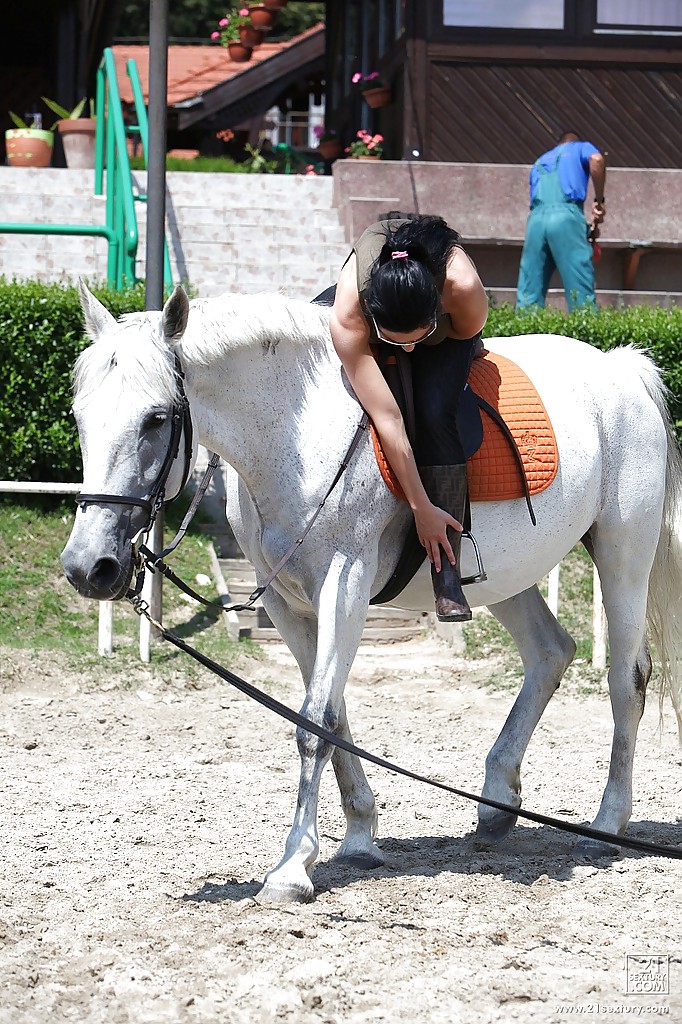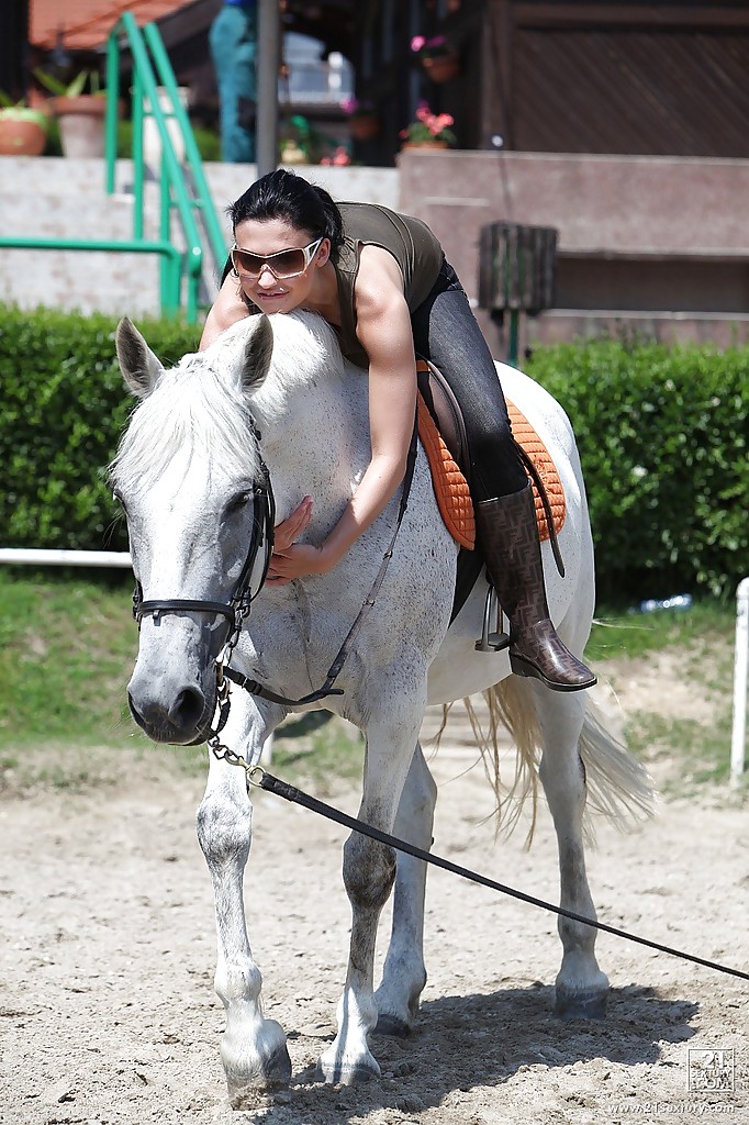 Порнозвезда Алетта Оушен катается на лошади на открытом воздухе в очках