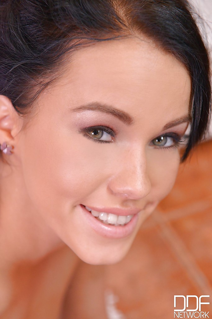 Сексуальная брюнетка-соло-модель Меган Рейн позирует топлесс в колготках