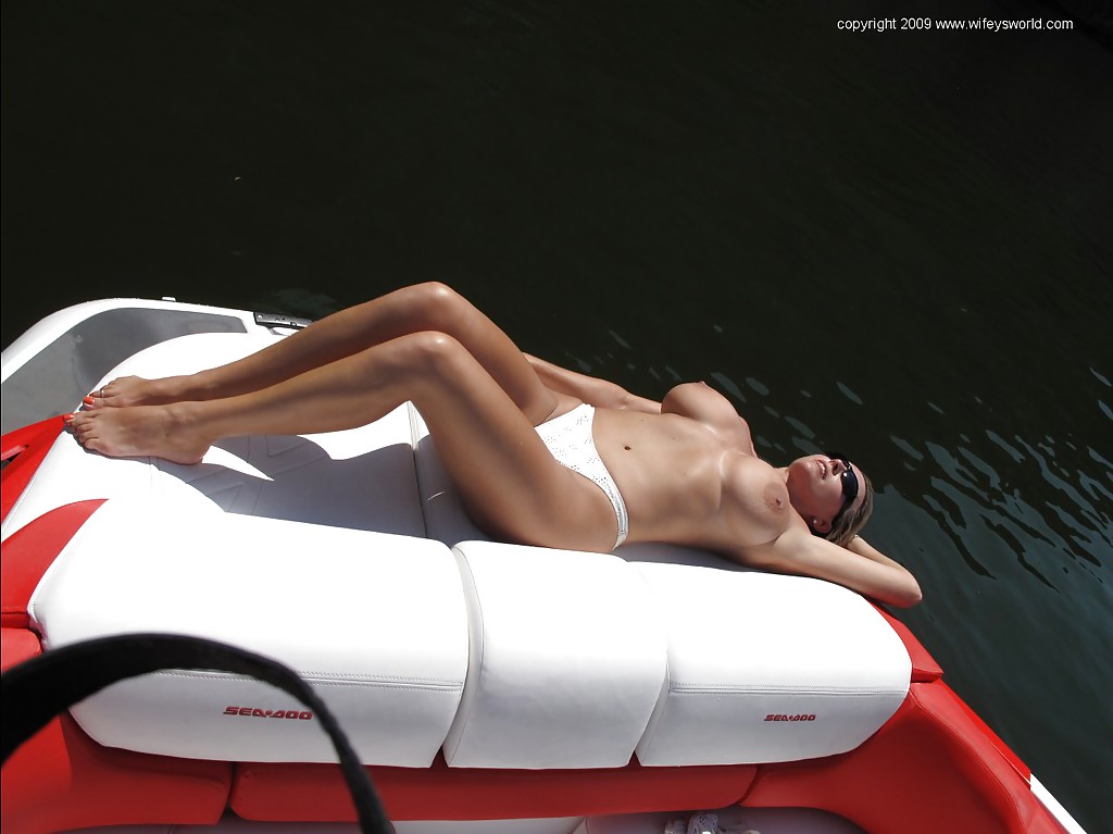 Соблазнительная милфа в белом бикини с женушкой развлекаются на открытом воздухе