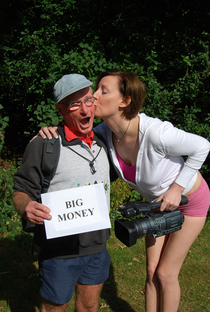 Зрелая женщина наклоняется, чтобы отсосать член олдмана, одетая в горячие черные чулки