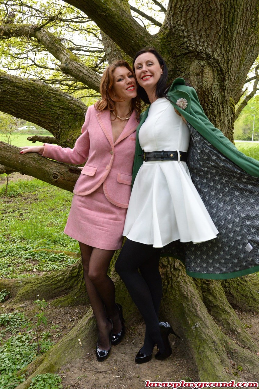 Зрелые лесбиянки раздеваются до сексуальных чулок и раздвигают ножки для поедания киски